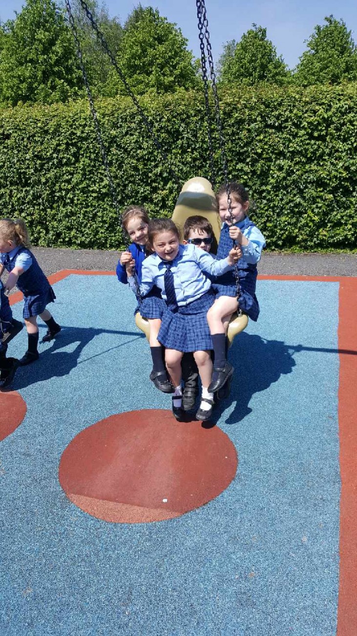 Ms McDermott’s Junior Infants enjoying the sun in the park!